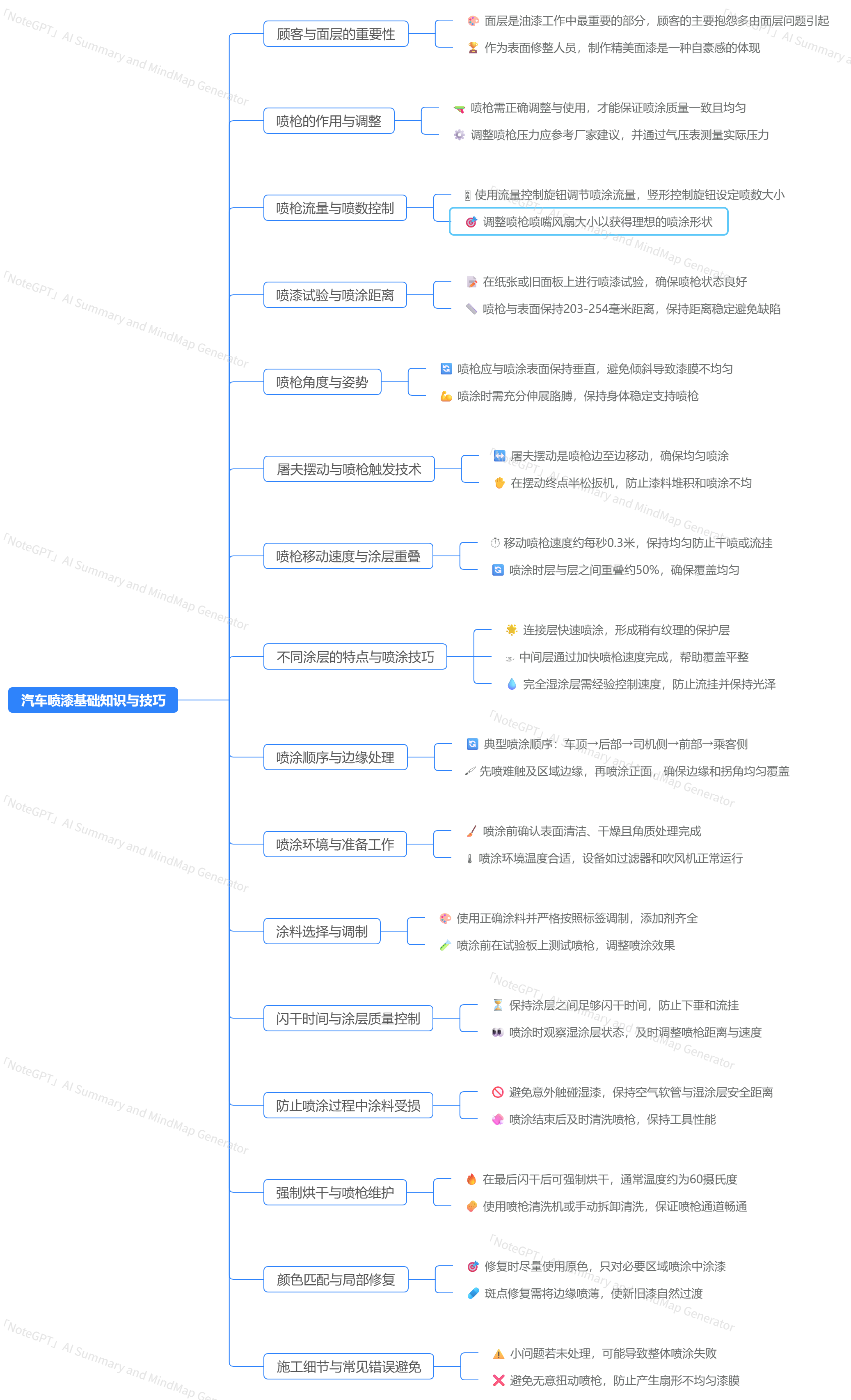 🔧 喷枪压力和喷嘴大小需严格按照厂家建议调整,保持喷漆雾均匀。